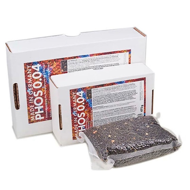 ※950g PHOS 0.04 は、リン酸とケイ酸、飼育水を黄色にする物質(有機物がろ過され、 残された物質)を水槽から安全に除去する新しい複合吸着剤です。 PHOS 0.04 のユニークな特徴は、 0.00mg/lまで低下しないため、サンゴや 微生物が必要とするリン酸を残しながら安全に使用できる製品です。飼育水についている色と栄養素(リン等)はマテリアルにしっかりと結合し、 再放出されないため、水槽の栄養素含有量を非常に低く抑えることができます。 使用方法/ 使用量 100 Lの飼育水に対して50 mlのPHOS 0.04を使用してください。 製品は洗わずに使用することができます。 ネットに入れて、濾過槽内の水流のある場所に設置してください。 約5日後に試薬で測定し数値に変化がない場合や高くなってしまった場合、100 Lの飼育水に対して最大100 mlまで量を増やすことができます。リン酸塩の値が再び上昇した場合は、PHOS 0.04を交換する目安となります。 本製品は黄ばみを除去する効果もありますが、主目的はリン酸塩の除去剤です。黄ばみで交換時期は判断しないでください。黄ばみがひどい場合は、カーボン(活性炭)を使用して除去してください
