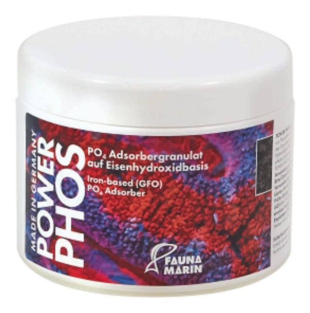 ※500ml 本製品はUltra Phos に比べて約2 倍のケイ酸塩を除去することが可能です。 茶苔などに悩んでいる方、水道水から海水溶かして使われている方には、こちらの製品のほうが向いているかもしれませんね。 リン酸塩等はPower Phos の表面に結合し放出されることはありません。 Power Phos の使用により、リン酸塩は低下して不要な藻の成長が止まります。 サンゴは自然な色や従来の鮮やかな色を発色しやすくなるでしょう。 事前に洗浄してあり、すぐに使用する事ができます。 使用方法/ 使用量 本製品を通過する飼育水が多いほどリン酸塩は低下しやすい事を忘れないでください。また、極端な水質変化も生体にとって マイナスになる場合がありますので、使用開始は少量から実行して必要に応じで増量します。 ネットに入れた本製品をサンプに設置してください。開始時の使用量は、水槽の水量100 リットルあたり30ml からスタートします。 使用前にリン酸塩の数値を必ず試薬で測定してください。約7 日目以降は約5-7 日おきに測定して数値が上昇するタイミングを 確認してください。上昇した時が交換時期です。 その時の数値が目的よりもかなり離れていれば、最大使用量として水槽の水量100 リットルあたり60ml に増やすことが可能です。 目的数値に達してからも試薬を使い定期的に測定することで、おおよその交換時期のパターンを見つけることができます。 テクニカルメモ 低すぎるリン酸塩は生態系バランスを崩したり、サンゴの退色、白化、死亡につながります。 適度な数値をキープしてください。 サンプにセットした際に水が少し赤色になる事がありますが、製品が崩れた粉等によるもので直ぐにおさまります。